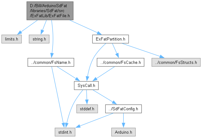 #include <limits.h>#include <string.h>#include "../common/FmtNumber.h"#include "../common/FsApiConstants.h"#include "../common/FsDateTime.h"#include "../common/FsName.h"#include "ExFatPartition.h"#include "../common/ArduinoFiles.h"